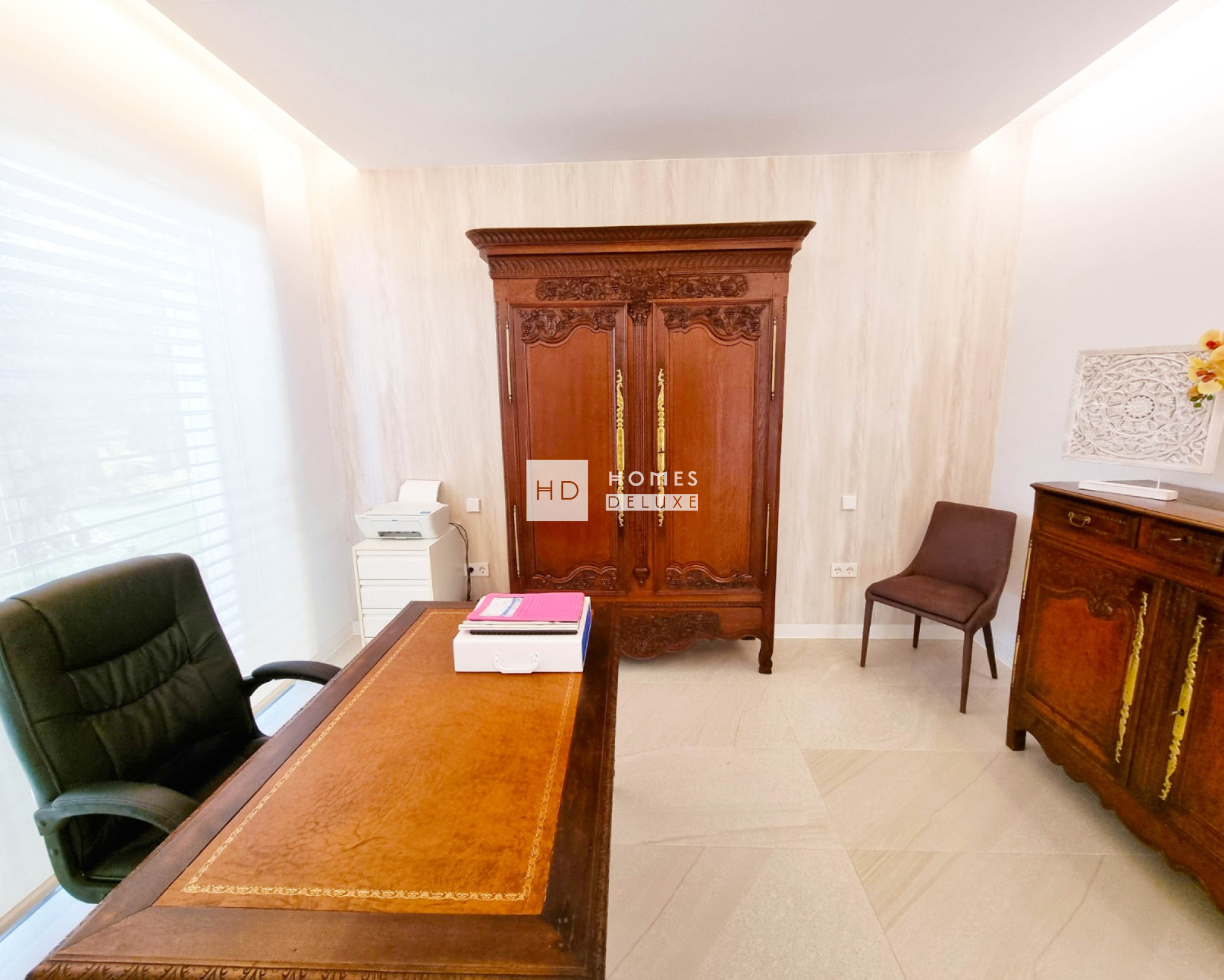 The outdoor spaces are equally impressive, with a private swimming pool set within a beautifully landscaped garden, creating a serene oasis of privacy and tranquility. Every detail has been carefully considered to enhance the sense of luxury living, from the seamless indoor-outdoor flow to the high-quality finishes throughout the property.