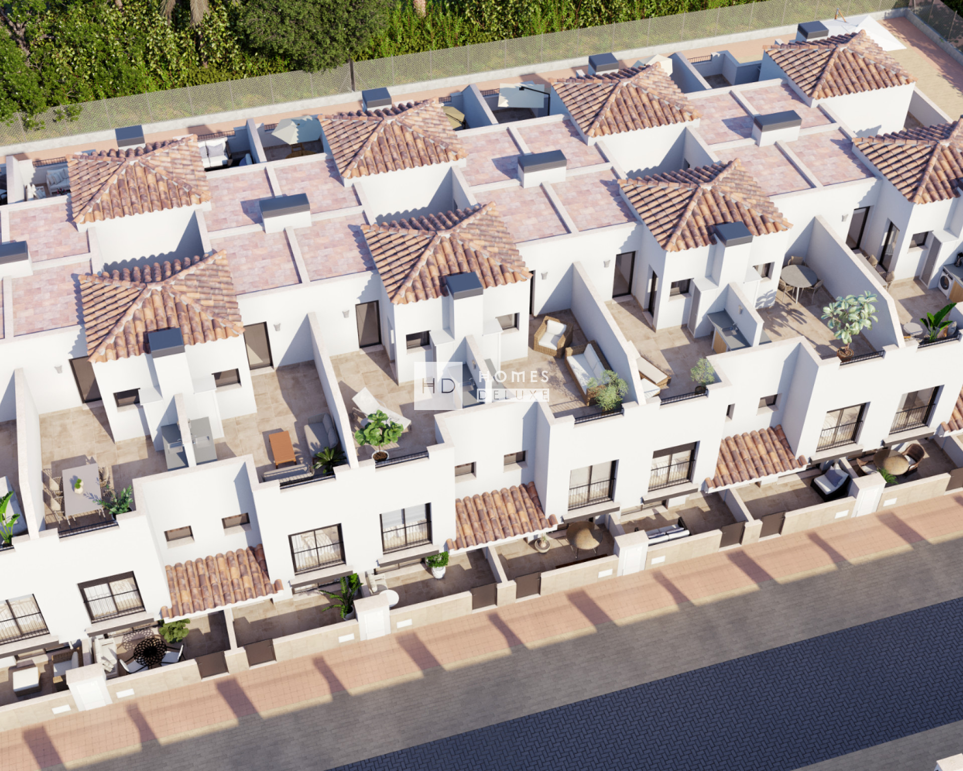 A brand new project of 18 contemporary style townhouses offering 2 or 3 bedrooms and 2 bathrooms located in Santa Rosalia Village - Torre Pacheco (Murcia), surrounded by amenities, sports facilities, near several golf courses, and only a short drive to the beautiful beaches in Los Alcazares.