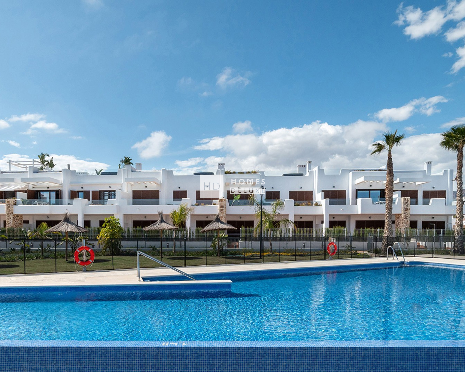 The resort has a traditional Mediterranean architectural design with Arabic influences and being close to the sea gives it a totally harmonious aspect. All the properties from all phases are within a short walking distance to the beach, the apartments in new phase are located on the beachfront and will have spectacular views of the sea. There is the choice of 1, 2 or 3 bedroom homes with 1 or 2 bathrooms, Premium or Standard classes, so you can choose the home type that best suits your needs. Apartments with spacious terraces to enjoy outdoor living in Spain in the warm climate, there is also the selection of apartments with private gardens or rooftop solariums and a variety of different orientations to satisfy all preferences. The complexes are designed to offer large exterior spaces, with beautiful gardens and squares that include large communal swimming pool areas with Jacuzzis, fully landscaped gardens offering chill out zones to have sun loungers and parasols around the pool area and a children's playground area, all within an enclosed community.